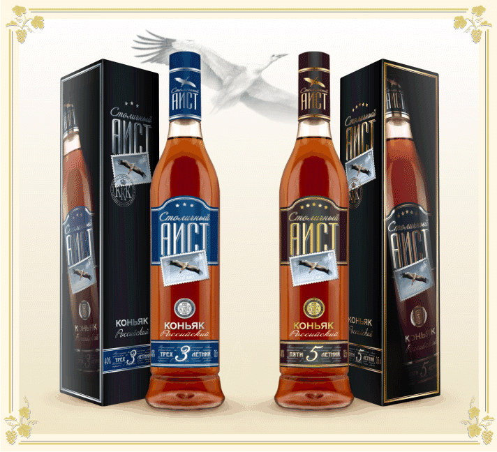 Коньяк в ассортименте 3 года и 5 лет.