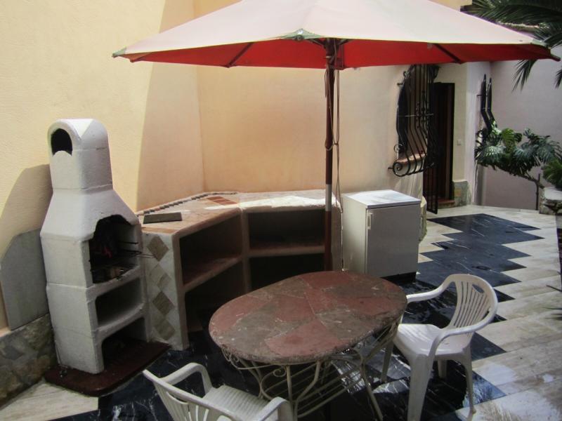 Земля 500 м2 с бассейном, большая часть покрыта мрамором, есть сад, всевозможные террасы, мраморная барбакоа, туалет, стоянка для нескольких машин.