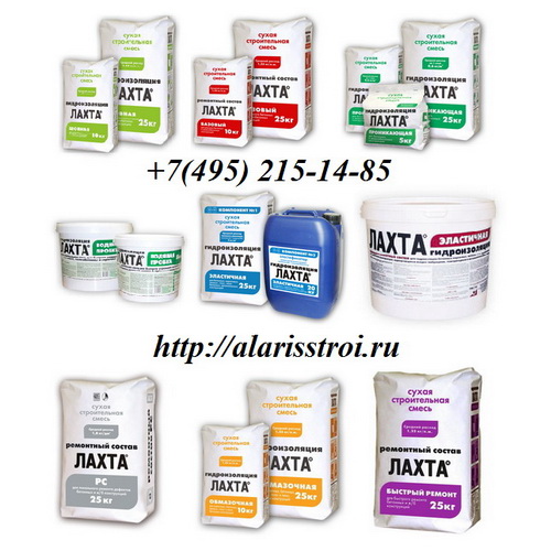 Гидроизоляционные материалы проникающего действия: Лахта проникающая гидроизоляция, Лахта шовная гидроизоляция, Лахта штукатурная гидроизоляция, Лахта обмазочная гидроизоляция, Лахта эластичная гидроизоляция, Лахта водяная пробка, Лахта ремонтный состав, Лахта быстрый ремонт, Лахта ремонтный состав, Лахта комплексная добавка в бетон. Применяются для защиты строительных сооружений, конструкций и зданий от проникновения и вредного воздействия воды, а так же обеспечивает нормальную эксплуатацию зданий и сооружений, повышает их надежность и долговечность. Цены производителя, доставка по РФ, экспорт, скидки на крупный опт.