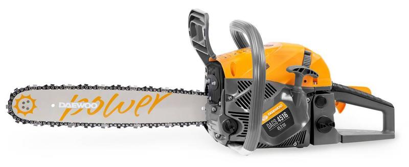 Бензиновая пила DAEWOO DACS4516 оснащена двухтактным двигателем 045 two stroke. Использует-ся для распила деревьев, обрезания веток. Для доступа к воздушному фильтру не требуются допол-нительные инструменты. Антивибрационная система способствует снижению нагрузки на кисти рук при длительном использовании. Инерционный тормоз цепи при необходимости остановит ее за не-сколько десятых секунды, специальный контактный защитный щиток срабатывает при непроизволь-ном касании рукой - все это обеспечивает защиту оператора. Модель поставляется в сумке, что ре-шает вопрос хранения и транспортировки.