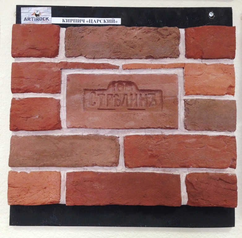 Компания "Артирок" предлагает плитку облицовочную «Кирпич «Царский» для фасадов и интерьеров. Полностью имитирует подлинный старинный кирпич заводов Петербургской губернии 19-20вв. Размер: 250-265 х 70мм, толщ.15-18мм. Панельки декоративные с различными клеймами (10 видов), размер 250-265 х 120-130мм. А также другие виды декоративного камня для облицовки цоколей, фасадов, интерьера (плитка под рваный камень, доломит, песчаник, гранитный скол и др.).www.artirock.ru