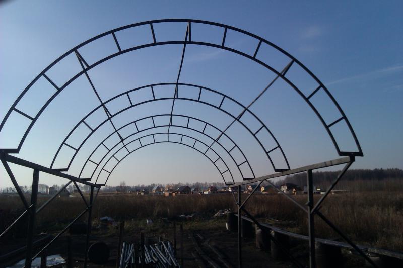 Каркас из профильной грунтованной трубы. Столбы 50*50 мм (4 шт), дуги 20*20 мм (через 1,5 м). Высота - 2,8 м, ширина – 3,3 м, длина – 6 м. Продаем только каркас. Отдельно предлагаем поликарбонат. Цена - 32850 руб.