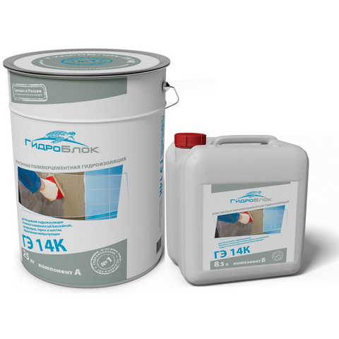 ГидроБлок ГЭ 14К эластичная двухкомпонентная полимерцементная гидроизоляция. Применяется для бесшовной гидроизоляции бетонных поверхностей бассейнов, резервуаров, ёмкостей, ванных комнат, санузлов и т.д. Марка по водонепроницаемости W12 на прижим. Морозостойкость min F300. Расход 1,5кг/м2 при толщине слоя 1мм. Цены производителя, скидки на опт, доставка по РФ.