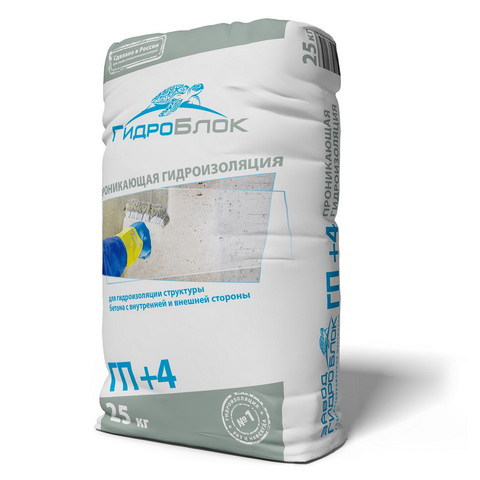 ГидроБлок ГП 4 высокоэффективная гидроизоляция бетонных и железобетонных конструкций. Исключительные свойства, широкий диапазон рабочих температур, глубокое проникновение 600 мм, надежная защита бетона от воды и агрессивных веществ. Проникающая гидроизоляция ГидроБлок ГП 4 это принципиально новый материал, представляющий собой комбинацию цементов разных типов, дополненных кварцевым песком и измельченными минералами. Исключительные свойства гидроизоляции придает особая химическая добавка. Главная функция гидроизоляции ГидроБлок ГП 4 – повышение влагоустойчивости и морозостойкости бетонных конструкций. Расход 1кг/м2 с учётом нанесения в два слоя. Цены производителя, скидки на опт, доставка по РФ.