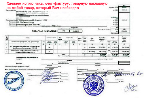 Услуги: Копия чека, товарную накладную, счет-фактуру