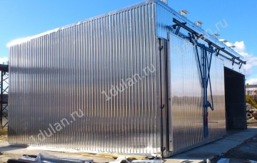 Теплоизоляция - пенополистирол листовой. Общая толщина изоляции: стен - 130мм., кровли - 120мм., ворот - 100мм.