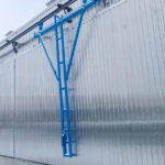 Для перемещения ворот используется стальной монорельс (балка №12). Подвеска монорельса на стальных кронштейнах к фронтонам на болтовых соединениях.