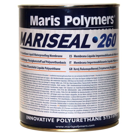 MARISEAL-260 гидроизоляционная однокомпонентная полиуретановая мембрана. В основе материала лежит беспримесная высокоэластичная гидрофобная полиуретановая смола, предающая в результате великолепные качества, такие как механическая, химическая и термическая устойчивость. MARISEAL-260 применяется для гидроизоляции кровли, тоннелей, балконов, ванных комнат. Делает водонепроницаемым старые рубероид и пергамин, при этом нет необходимости в их удалении. Полиуретановая мембрана MARISEAL-260 обладает широким температурным диапазоном эксплуатации от -50С до +90С. Расход материала составляет 1,2 – 2 кг/м2 при нанесении в два или три слоя на гладкую поверхность. Цвета: светло-серый, кремовый. Ведро 25 кг.