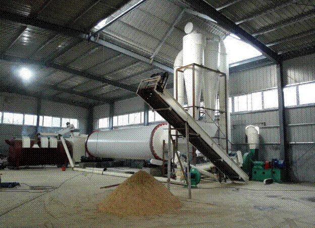 Влажный материал, опилки, щепа, поступают во внутренний цилиндр, где происходит предварительная сушка, далее от внутреннего цилиндра к среднему цилиндру, где происходит основная сушка и далее к верхнему цилиндру. Высушенное сырье подается на сепаратор.