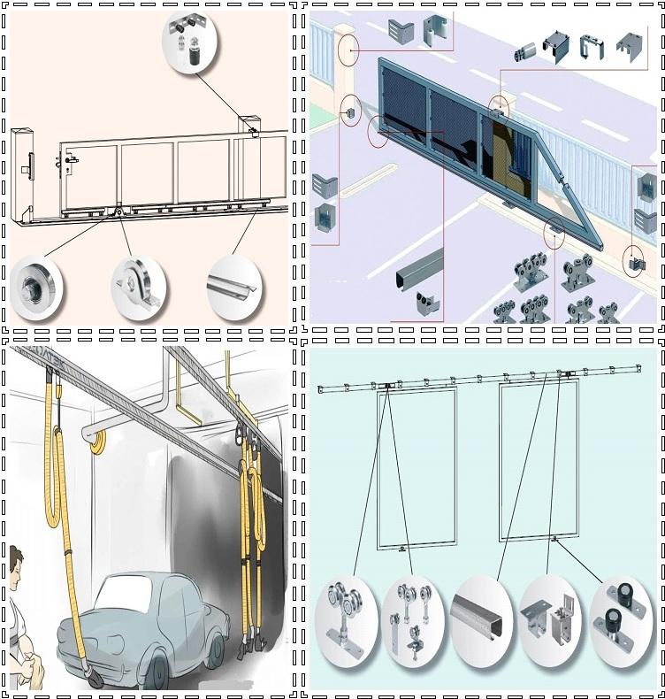 Большой выбор готовых комплектов фурнитуры для откатных ворот - рельсы, тележки, направляющие устройства, ролики.