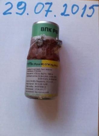Продукт Луна -М/СГМ (Hg2Sb2O7), плотность от 17,3- 20 грамм/см3 , вес нетто: 1730 грамм , вес брутто: 1960 грамм, цвет - серебристо -матовый с вишневым оттенком.